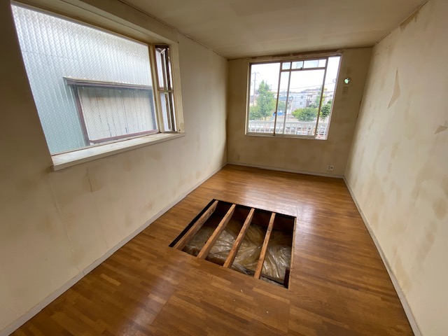 残置物撤去、特殊清掃、クロス全面撤去、床一部解体